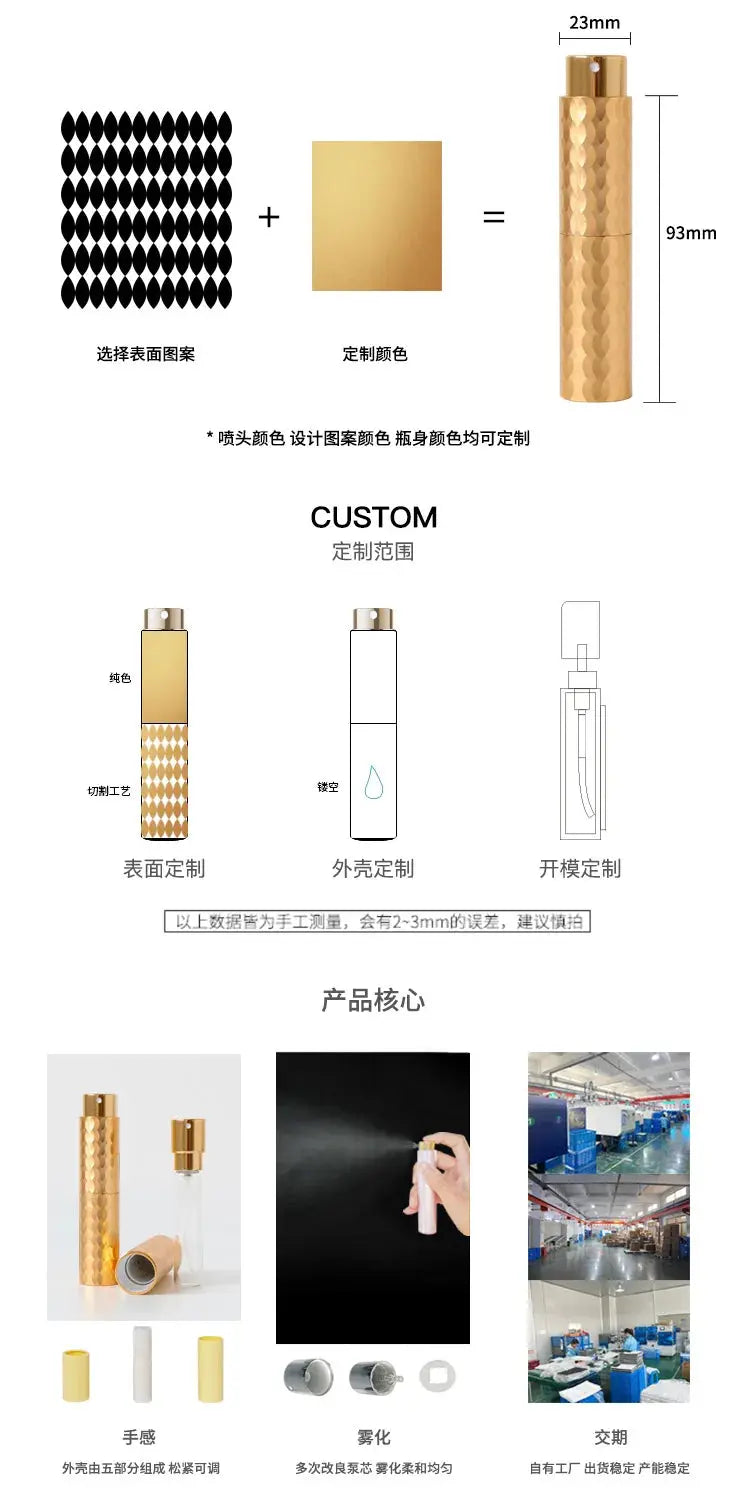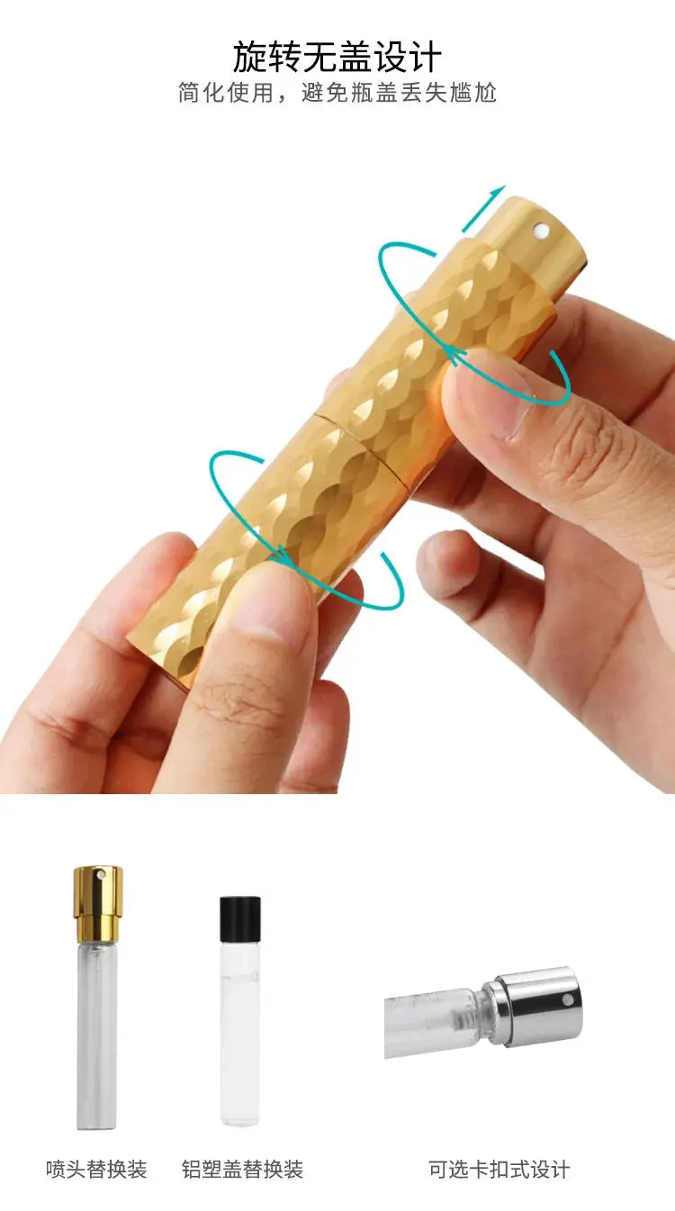 8ml Perfume Empty Bottle Cosmetics Spray Glass Bottles Refillable Atomizer Travel Aluminum Sprayer Desinfection Portable Alcohol