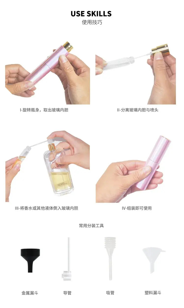 Product uses: can be filled with perfume, fragrance, moisturizing water, oral refreshing agent.
